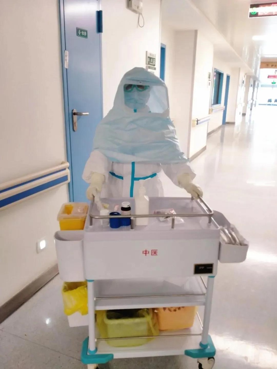 組里29床的阿姨也是我們組的重點病人,由于既往有腫瘤病史,阿姨患病以來特別焦慮,每次查房主訴都很多,我也都非常耐心的和她解釋病情,調整用藥。今天在我查房結束時她忽然拉住我說“謝謝你”這聲謝謝讓我淚盈于睫。在忙碌和感動中結束了今天的工作!脫掉防護服感覺很累,很冷,才發覺穿在防護服里面的衣服已經濕透了。