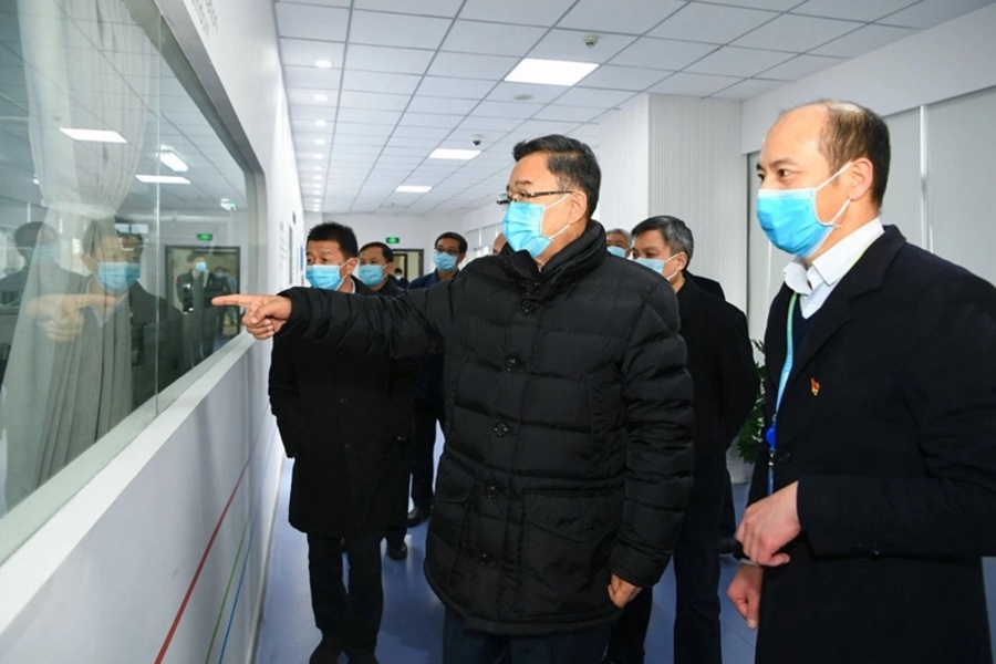 2月20日,中共貴州省委書記、省人大常委會(huì)主任、省應(yīng)對(duì)新冠肺炎疫情防控工作領(lǐng)導(dǎo)小組組長(zhǎng)孫志剛(中)到時(shí)代沃頓科技有限公司考察復(fù)工復(fù)產(chǎn)情況。(圖片來源:天眼新聞)
