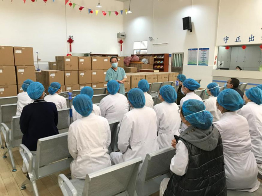為了實現醫務人員零感染,在前往武漢途中和抵達駐地不久,他不失時機地向大家講解了呼吸道癥狀感染性疾病的傳播特點和個人防護用品使用的注意事項。
