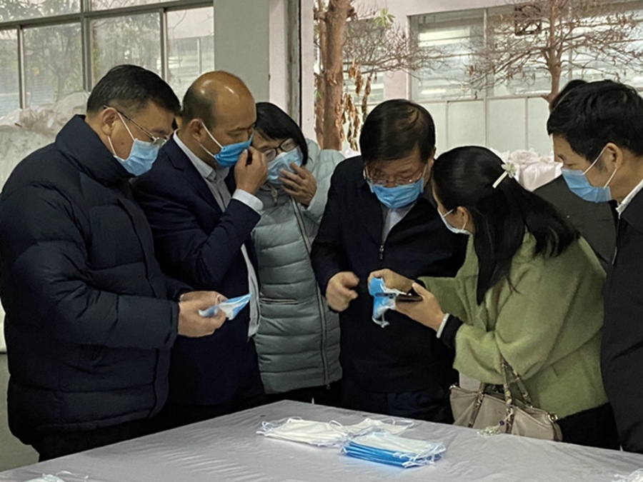 來賓市企業(yè)家社員 藍(lán)國(guó)勇(左二)改裝生產(chǎn)線生產(chǎn)民用口罩支援抗疫