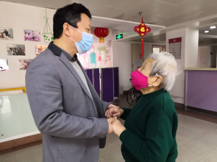 孫兆元用心用情關愛老人,體恤家屬。2月20日,養老院原計劃的一個傳統活動——老人生日會受疫情影響無法如期舉行。他便提前安排膳食科為過生日的老人精心準備了生日蛋糕 、生日套餐和壽面,并在當天親自為老人們一一送上生日祝福,用真情撫慰老人們的心靈。