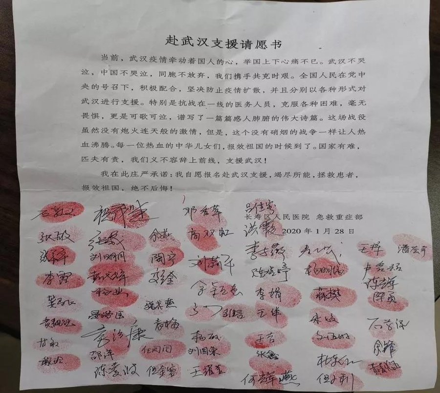 “我已將小孩托給了父母,隨時(shí)聽從組織安排!”“我將全身心投入‘戰(zhàn)斗’,請組織放心!”社員張敏、石敦義等在鏗鏘有力的“請戰(zhàn)書”上蓋上鮮紅的指印,主動(dòng)請纓奔赴武漢一線馳援,用九三人的一腔熱血彰顯“以性命相托”抗擊新型冠狀病毒肺炎疫情的決心和信心!