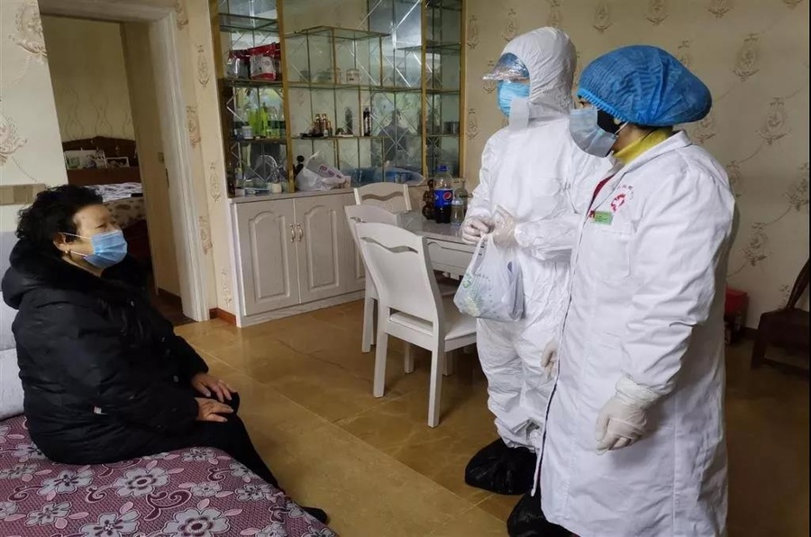 陳莉莉(右一)與同事一起為湖北返鄉(xiāng)的居民進(jìn)行入戶監(jiān)測
