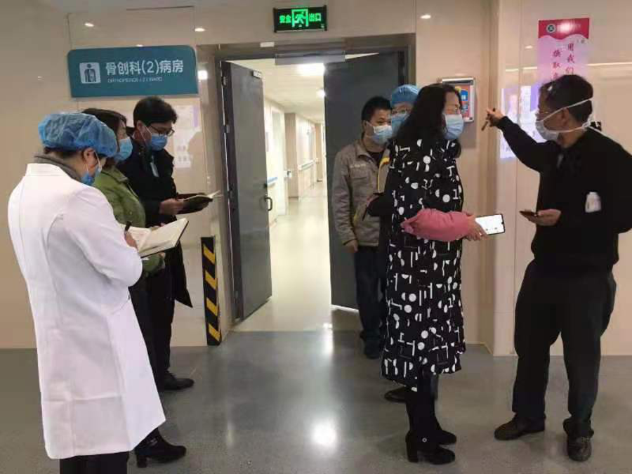 景照峰(右二)對盤州市人民醫院擬改造為隔離病區的病房做布局和流程規劃指導(圖)