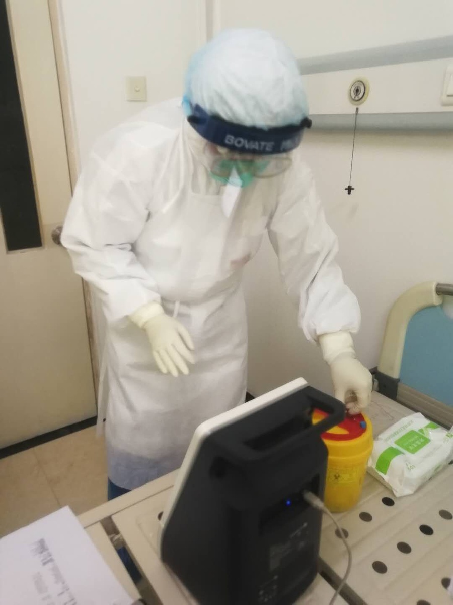 2月13日,隔離病區(qū)一位患者突然病情危重,在專家組的指導下,醫(yī)護人員爭分奪秒投入到與“死神”的較量中:及時為病人進行氣管插管,血氣分析檢測都要到病人床旁操作。員金利毫不遲疑說:“我去!”他穿好防護服來到重癥監(jiān)護病房,與同事配合安裝測試儀器,開始檢測標本……從接到標本到發(fā)出報告僅用了不到20分鐘。就這樣他在重癥病房堅守了8個小時,直到患者轉(zhuǎn)危為安。