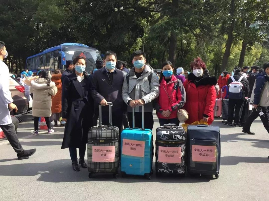 2月13日,安徽省第四批支援湖北醫療隊集結完成,向武漢進發。安醫大附院支社社員李成聰帶著九三人的牽掛和祝福隨隊出發。李成聰表示她一定不辱使命,擔當盡責。