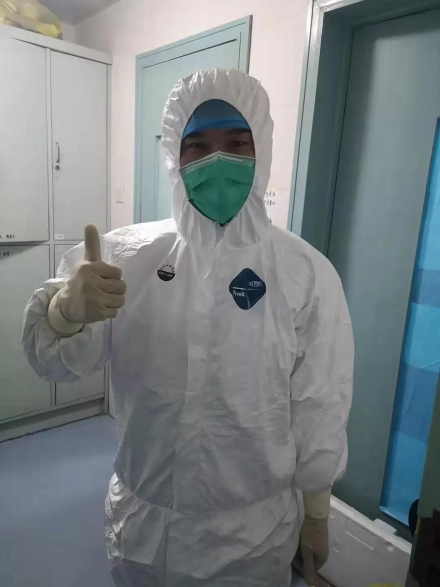 魯明(中)在武漢方艙醫院上崗前
