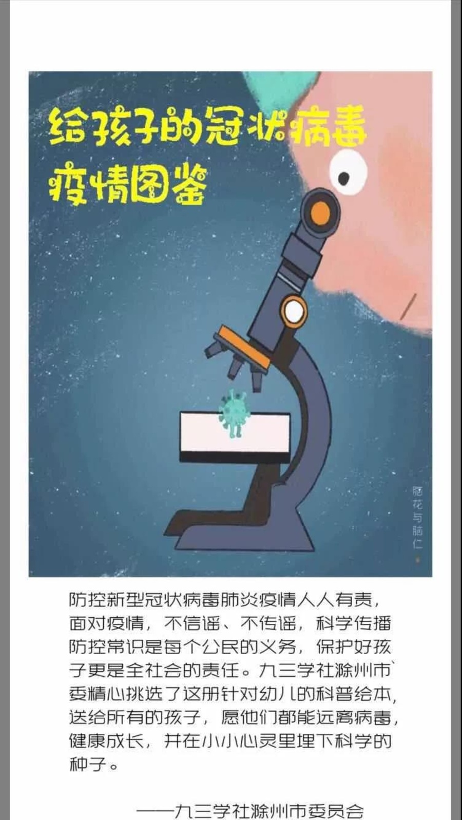 “講科普”是九三學社服務社會的一面旗幟。特殊時期,九三學社滁州市委副主委丁曉麗組織社內專家等整理選編兩冊兒童科普電子讀物《給孩子的冠狀病毒疫情圖鑒》和《不一樣的春節》,在社內外推廣,并推薦給教育部門。作為一名準社員,張衛軍根據阜陽市二院需求,拍攝公益短片,示范正確穿脫防護用品、洗手等。