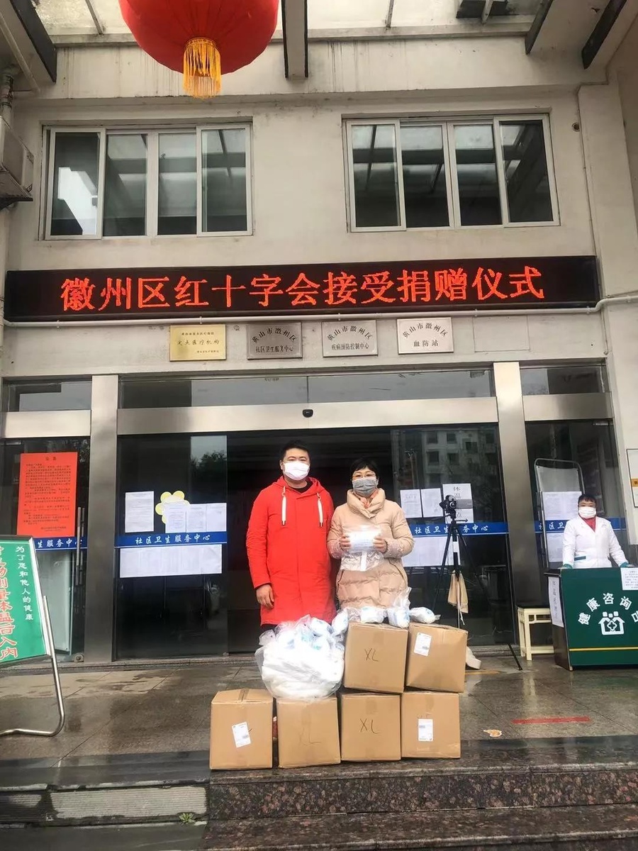 黃山社員凌煒強向徽州區紅十字會捐贈口罩和防護服