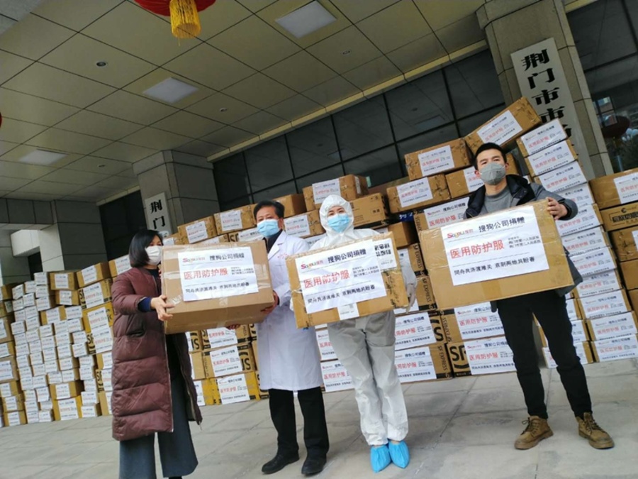 2月18日13時許,一輛從北京出發(fā),滿載著價值近百萬元、共計4000多套醫(yī)用防護(hù)服的廂式貨車終于到達(dá)荊門疫情防控指揮部,這已經(jīng)是搜狗公司向荊門市冠狀病毒防控一線捐贈的第七批醫(yī)療物資。參與搜狗公司捐贈物資接收的中共荊門市委常委、常務(wù)副市長趙俊十分感動,再一次對搜狗公司大愛助荊門的義舉豎起了大拇指!九三學(xué)社荊門市委主委、市政協(xié)副主席劉國芳緊握著負(fù)責(zé)物資運(yùn)輸?shù)亩煾档氖终f:“搜狗公司的這份情,300萬荊門人民永遠(yuǎn)記著!