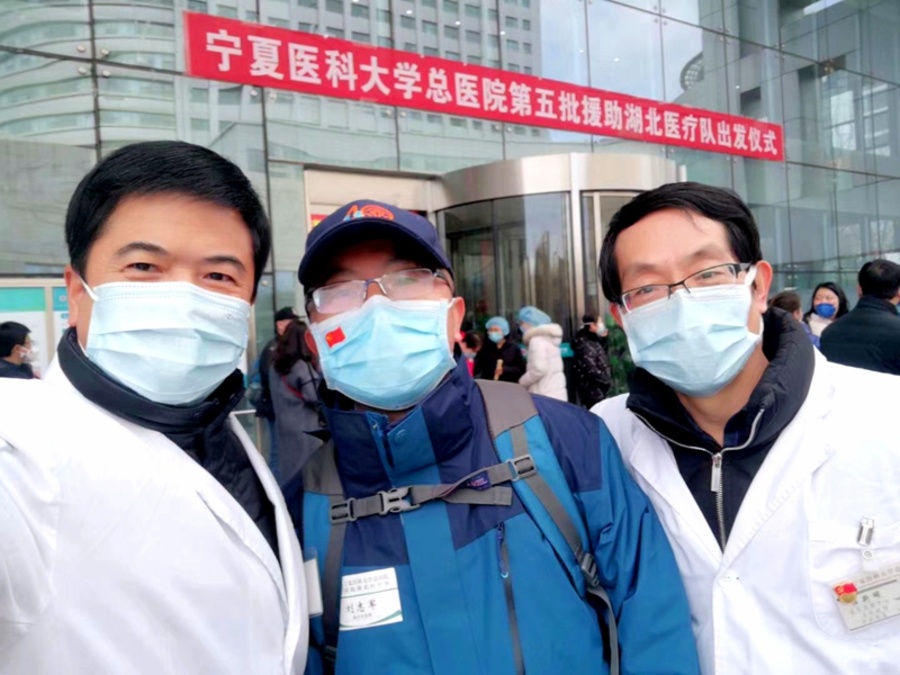 劉志軍作為一名醫(yī)務(wù)工作者,在疫情發(fā)生之初憑借自身的專業(yè)敏感性,迅速意識到了其嚴(yán)重性。他主動(dòng)深入學(xué)習(xí)相關(guān)知識,并從本專業(yè)入手,思考如何從本專業(yè)出發(fā)為防控疫情做出貢獻(xiàn)。農(nóng)歷大年三十,寧夏醫(yī)科大學(xué)總醫(yī)院心腦血管病醫(yī)院在微信群招募支援湖北的醫(yī)務(wù)工作者,劉志軍毫不猶豫的報(bào)了名。他說:“想想17年前的SARS,我還是一名研究生畢業(yè)3年的年輕醫(yī)生,只能在學(xué)校給被封在校的大學(xué)生看病。如今作為一名已經(jīng)有20余年的工作經(jīng)歷的內(nèi)科醫(yī)生,豈能袖手旁觀。”