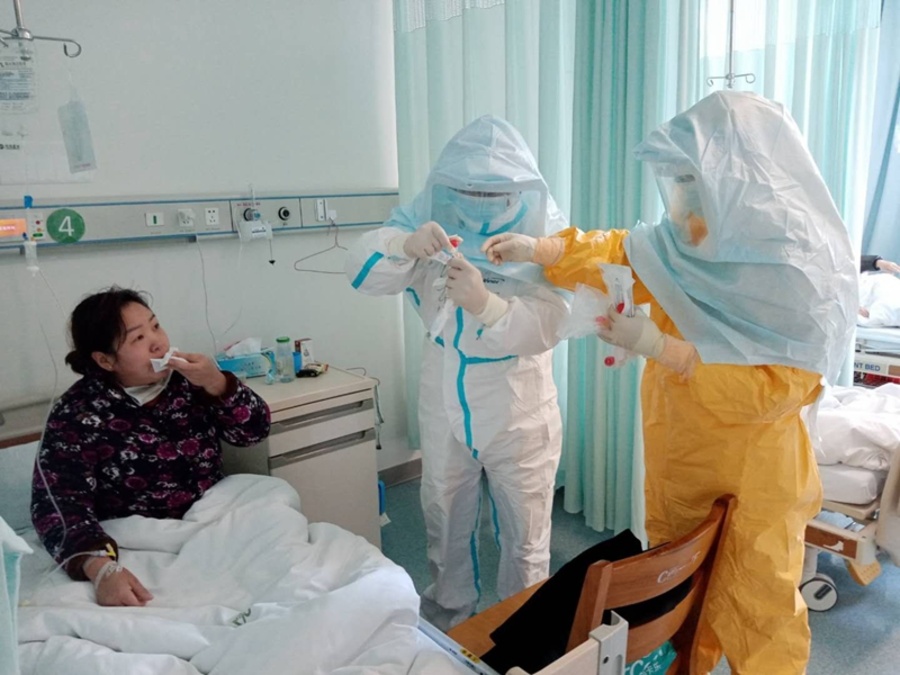淄博市第一醫院呼吸與危重癥科副主任呂紀玲,出于便利工作和自身防護的需要,在到達湖北黃岡醫院后即把自己留了十幾年的長發剪成短發。面對有的患者剛入院時情緒緊張、脾氣暴躁的情況,呂紀玲和隊員們一邊對癥治療、減輕患者癥狀,一邊開展心理疏導,幫助他們提振信心,既點燃了患者生的希望,也讓整個病房充滿了生機和活力。