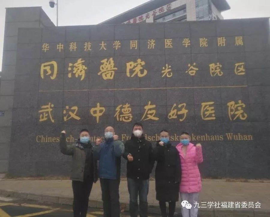 2月13日,杜厚偉隨福建省援助湖北應(yīng)對新冠肺炎疫情醫(yī)療隊馳援武漢。福建醫(yī)大九三的微信群里,同仁們的一聲聲“致敬”“保重”,向杜厚偉、陳德招表達(dá)了九三人最衷心的祝福和祝愿。杜厚偉在征程路途中給大家回話:“待到疫情破除日,我們福建再相聚!”
