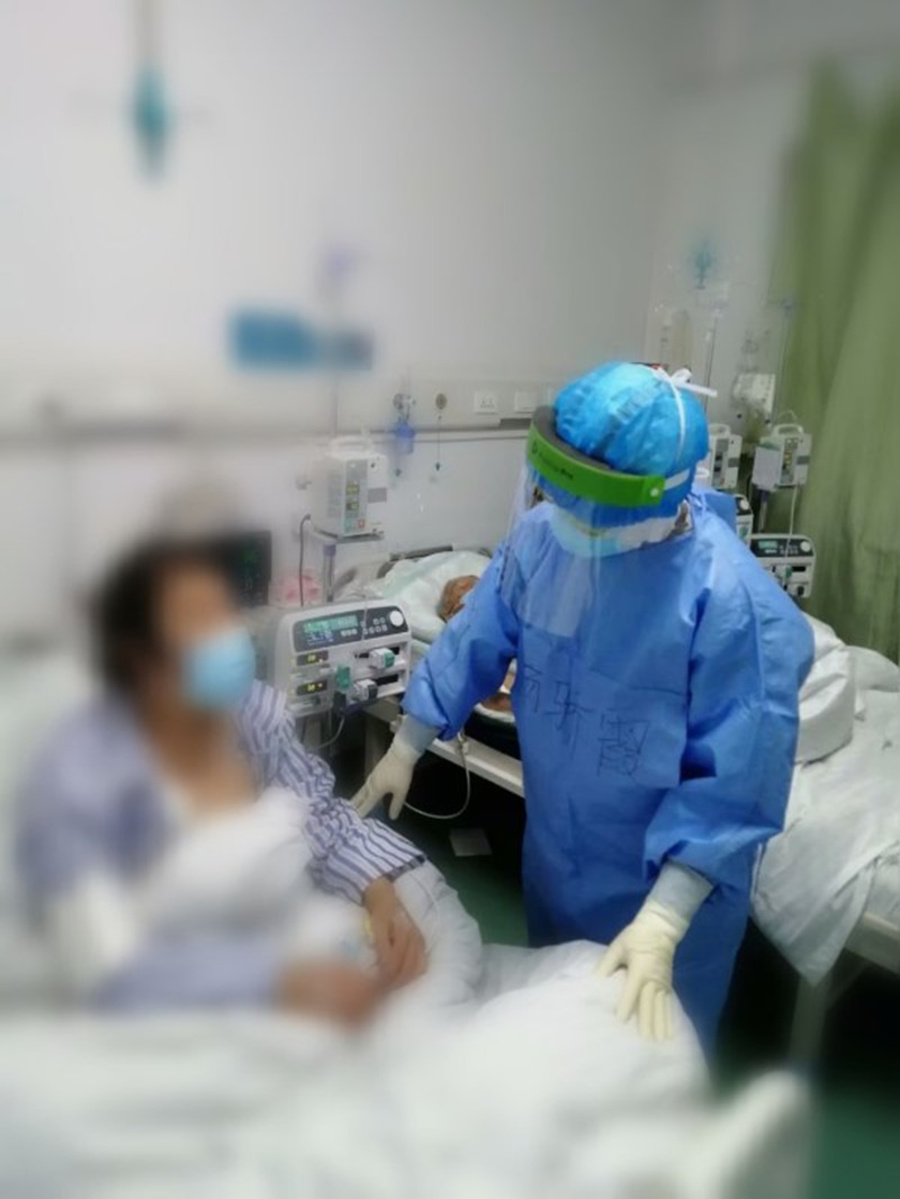 今天是進(jìn)入我院新冠病房工作第3天,對現(xiàn)在的工作流程略有熟悉。今晚兩名其他地區(qū)轉(zhuǎn)來的重患(夫妻二人,男患82歲高齡,兩人均患有高血壓,糖尿病等慢性疾病,女患還有慢阻肺心衰病史)轉(zhuǎn)入了我院病房。考慮到老兩口一起生活40余載,分開安排可能會造成互相牽掛、情緒低落,對治療不利,所以選了一間帶衛(wèi)生間的大病房,把兩位老人安排在一起。