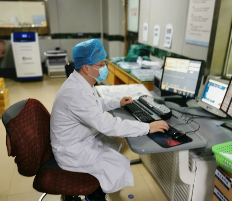 自疫情開始,來我們九江市第一人民醫院就診的發熱患者比以前明顯增多,CT在此次新冠肺炎的排查中發揮了重要的作用,影像中心的工作量很大,尤其是CT及X片室的技師們,胡俊松直接面對患者,感染的風險也隨之增大,但是毫無怨言,只想盡力把事情做得更好一些,每次患者做完檢查后,要在最短的時間發出診斷報告,并且要在第一時間通知發熱門診的同事,以便于安排隔離收治患者。