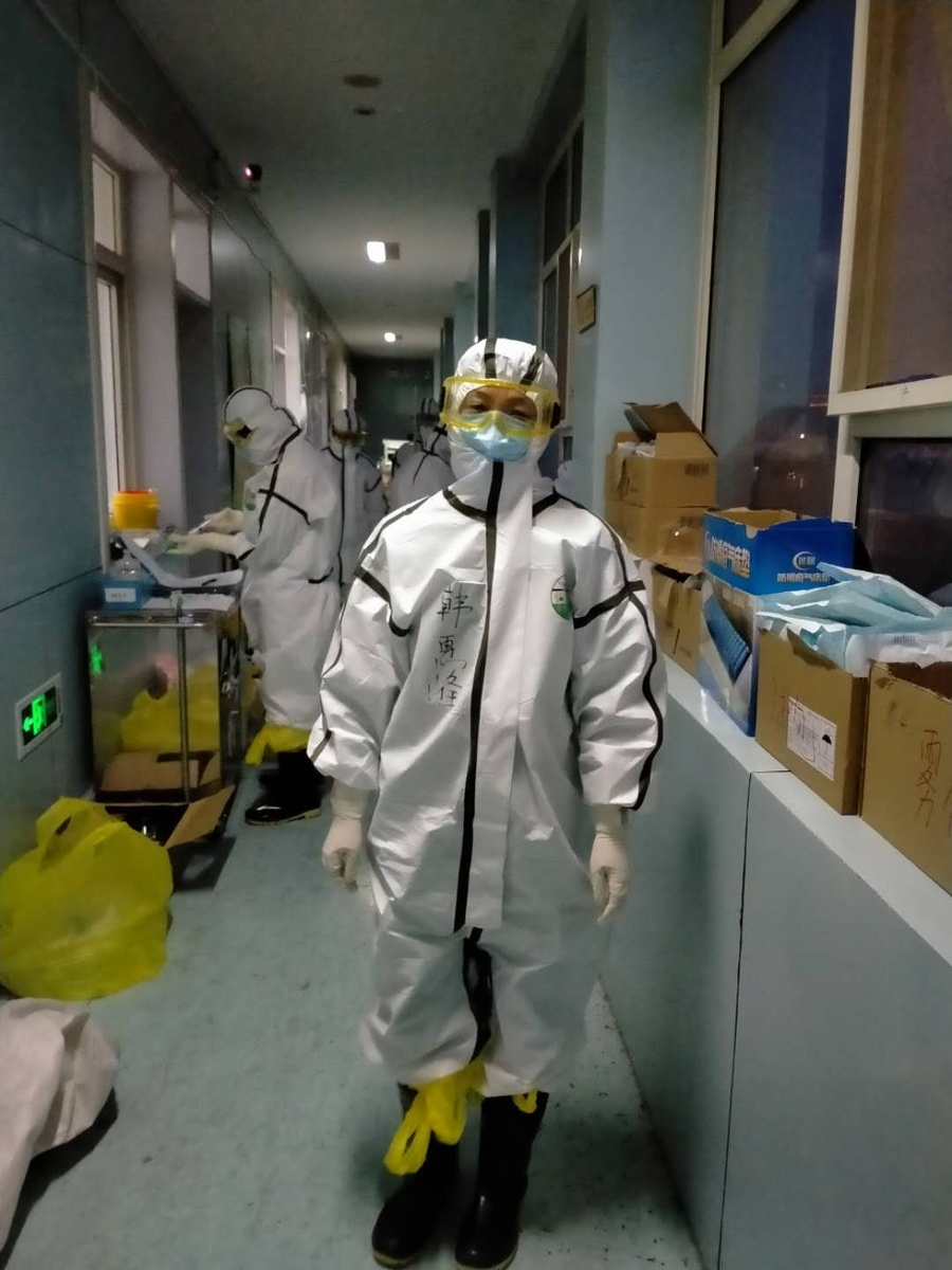 經過簡單地培訓,2月7日我進入市傳染病醫院第七病區投入戰斗,每天穿著厚厚的防護服穿行在病房與診療室間。我負責護理一位病情較重的患者,她呼吸困難,有時血氧飽和度在90%以下,每小時都要監測生命體征,測血糖、量血壓等等,并且悉心護理病人的日常生活,比如送飯倒水……每天工作6小時以上,再加上穿脫防護服的時間,在崗大約7、8個小時。每當拖著疲憊不堪的身體下班后,飯菜也涼了。晚上,我躺在床上,更覺得腰酸背痛,完全睡不著覺,靠口服安眠藥才能睡2-3個小時。由于年齡大,睡眠差,我擔心自己的血壓。但疫情就是號令,堅持就是勝利,我很榮幸又一次參加到這沒有硝煙的戰役中,而且上了最前線,為抗擊疫情,守護群眾生命安全盡自己的一份心力。(九三學社張家口市宣化區委 韓惠峰)