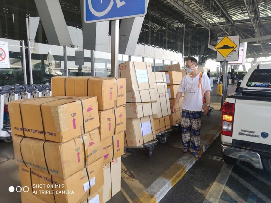 為了順利將口罩帶回,他決定采取不一樣行動。他與泰國華裔唐悅、長沙新認識的姐姐一起去郵局買了不含標識的箱子,在酒店狹小的倉庫里,將口罩盒和口罩包裝分開裝進新買的沒有標識的大箱子中(備注:泰國人比較死板,口罩從盒子里分開后即為印刷品和無紡布)。酒店的倉庫沒有空調,他們就自己想辦法,找酒店禮賓部的員工用200泰銖租來一臺電風扇,對著三個人吹;為了防止運口罩在機場入口處被黑警找理由查扣,便不顧一天的勞累,凌晨一點半親自將口罩箱運往機場,搬到到凌晨三點,才將口罩全部寄存到機場內部的行李寄存點;當天,他們在機場負一樓的方艙酒店休息了僅四個小時,就又開始辦理托運手續,終于,將口罩帶回了國內。