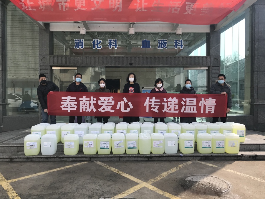 隨后,德魯克公司在九三學社淮安市委辦公室主任王力的陪同下,赴淮安市淮安醫院捐贈了40桶八四消毒液、6桶酒精,生態新城實驗幼兒園捐贈了6桶八四消毒劑、2桶酒精。淮安醫院副院長胡金紅、葛東方,生態新城實驗幼兒園園長丁霞感謝了德魯克公司的愛心善舉和九三學社淮安市委的熱心聯系,并表示一定會將這批物資用足用好。(九三學社江蘇淮安市委 王力)