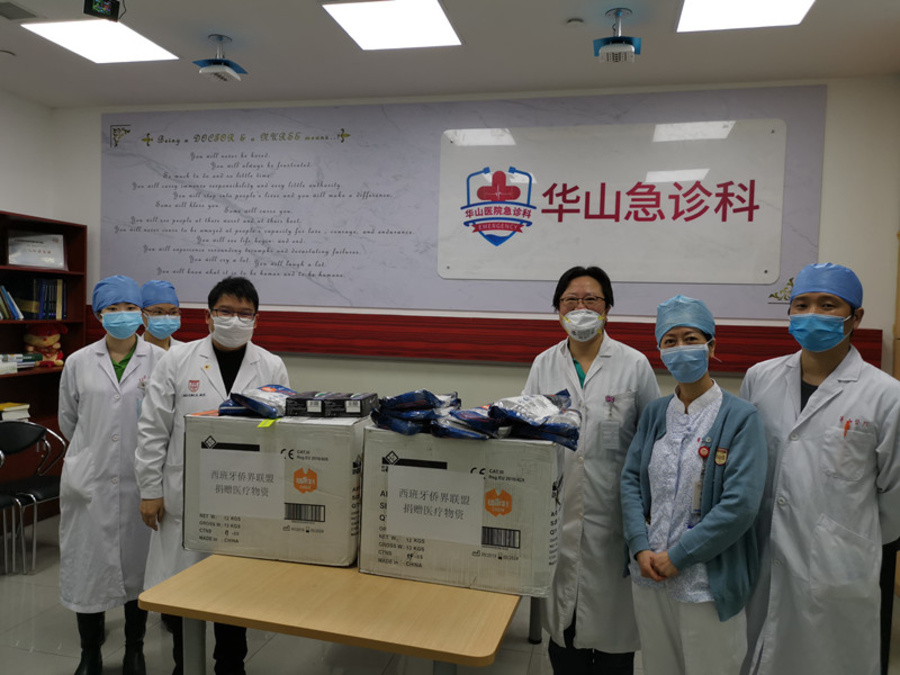 上海禾易設計有限公司董事長胡平因私赴西班牙,受馬德里僑界朋友所托,運送兩大箱醫療物資捐送華山醫院。“我是西班牙當地時間2月11日早上6點多的飛機,3點多要出發,她們提貨開車送到我賓館時已經是晚上12點了,這份有難同當的同胞情,讓我感動不已,”胡平說,“在荷蘭轉機時,我就捐贈的事情發了朋友圈,眾多上海朋友要開著車來接我,”滿滿的愛國情和正能量,充盈在心中。