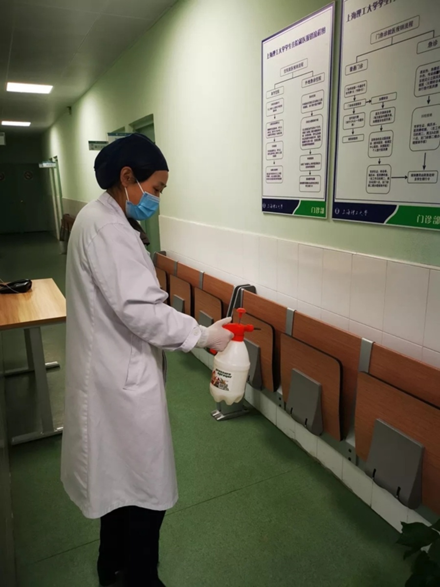 除了疫情防控的常規工作,李長琳還隨時準備處置突發狀況。光電學院的熊同學因為是武漢戶口,在浦東一家賓館隔離時遇到了困難,在學校的幫助下才解決,期間,李長琳一直與社區、疾控部門進行協調,打了無數個溝通電話。“其實我本來心里是很慌的,但李醫生每天給我打電話,聽到她的聲音就覺得安心很多,在學校的關心中安全度過了隔離期。”