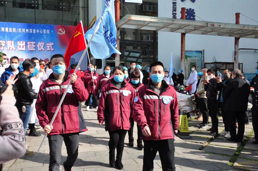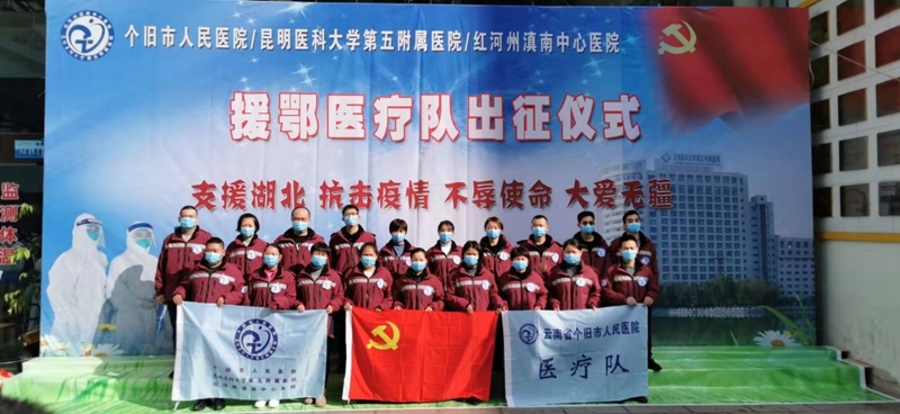 疫情當前,八方馳援!2月11日,個舊市人民醫院赴湖北抗擊疫情醫療隊19名醫務人員集結完畢、踏上征途。