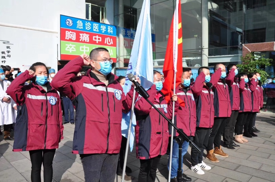 出征儀式現場,饒振譯代表19名隊員莊嚴宣誓:“支援湖北,抗擊疫情,不辱使命,堅決完成醫療救援任務!”